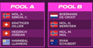 16. november kl 01:30: A. Mol / Sørum – Krattiger / Dillier (Sveits): 2 – 1 (24-26, 21-16, 15-12)