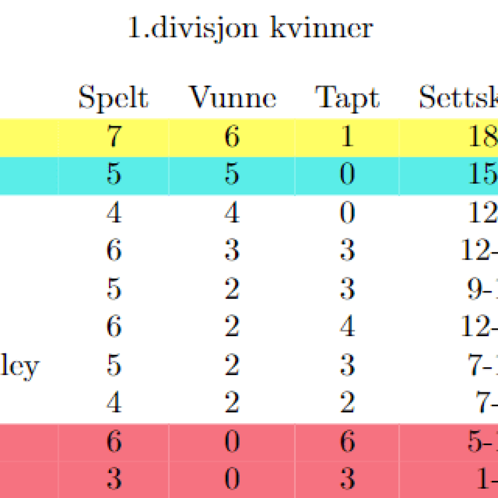 Andrelaga er, nær sagt som vanleg, sterke. Viking 2 har spelt heile sju kampar og kvittert ut med 15 poeng og serieleiing. Men ei lang rekke tie-break gjer at poengfangsten er lågare enn han kunne vore. Førde 2 har åtte poeng på fire kampar, medan NTNUI 2 har sju poeng på tre. Det er også lag som truleg går for medalje i serien, og vi ser fram til nye, jamne kampar i 1.divisjon!