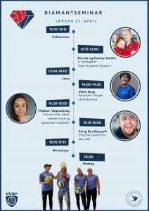 Samlingen denne helgen vil sette fokus på DiamantVolley og utøvere med utviklingshemming. Vi har lagt opp til et spennende program med både faglig påfyll fra foredragsholdere, workshops og praktiske økter i hall.
