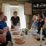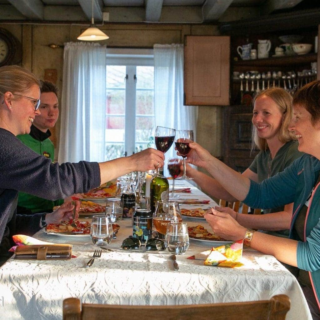 Etter noen intensive timer var det tid for mat med selvkomponert, stenovnsbak pizza. Sammen med spennende gardshistorier var det en meget spennede opplevelse. Utpå kvelden fikk vi lov å prøve oss på Skotthyll, en idrett som handler om å kaste jernskiver på «munker». Fantastisk moro, og konkurranseinstinktet kom frem hos flere.