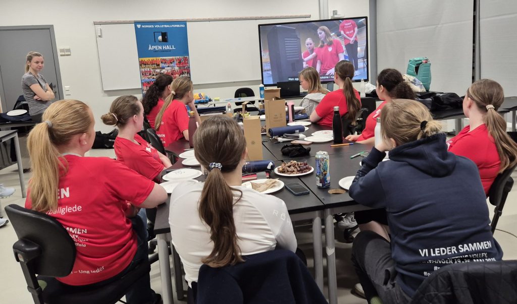 Ungdommene fikk se promoteringsvideoer for EM i sittevolleyball i Stavanger, video om Diamantvolleyball fra Stovner Sportsklubb og video med forslag til hvordan Åpen hall kan arrangeres.